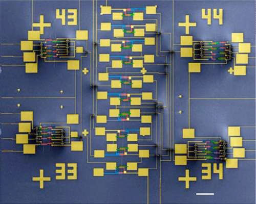 Электронная схема на основе шести углеродных нанотрубок, содержащая 46 полевых транзисторов