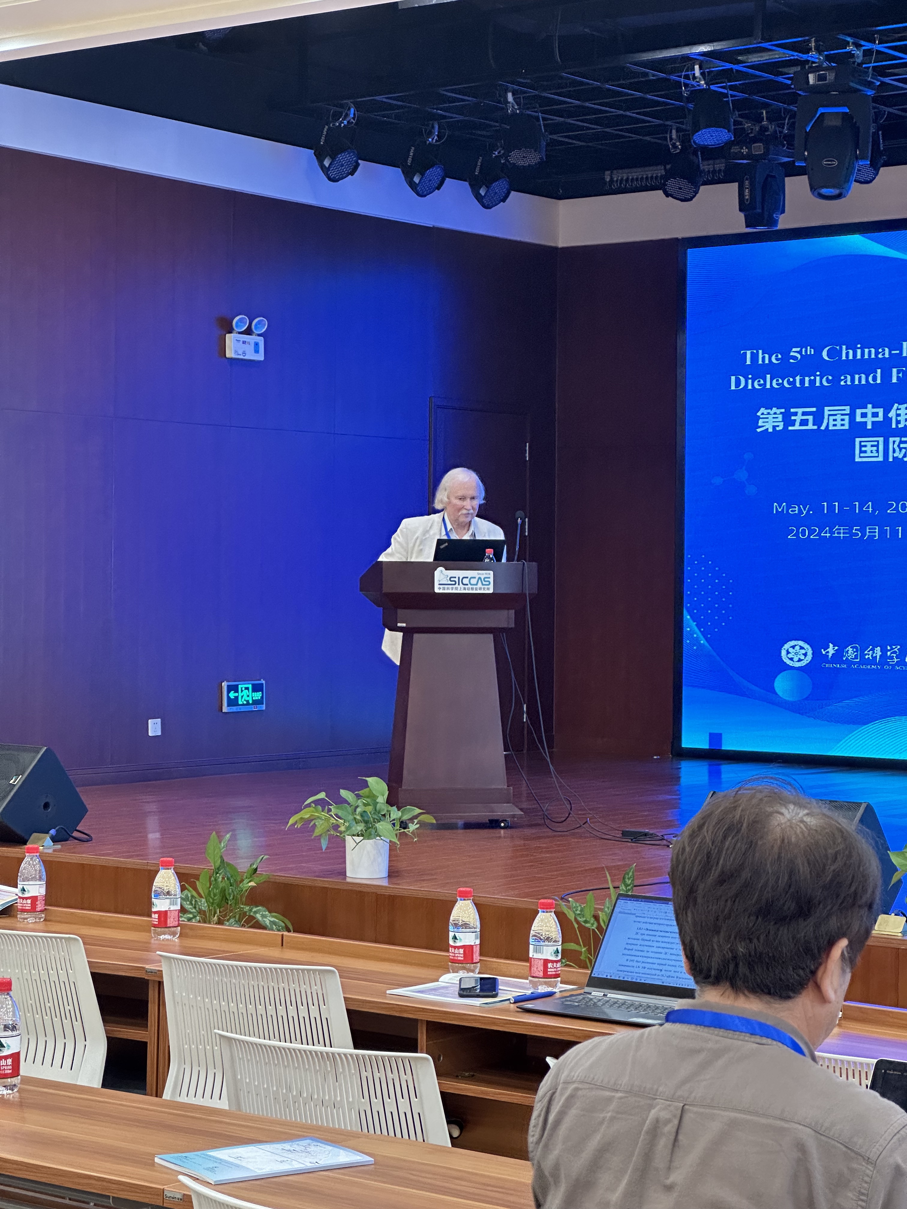 Александр Николаевич Втюрин делает доклад на 5 Китайско-Российский семинаре по физике сегнетоэлектриков и диэлектриков 13 мая 2024г. в Шанхайском инстиуте керамики Китайской Академии Наук.