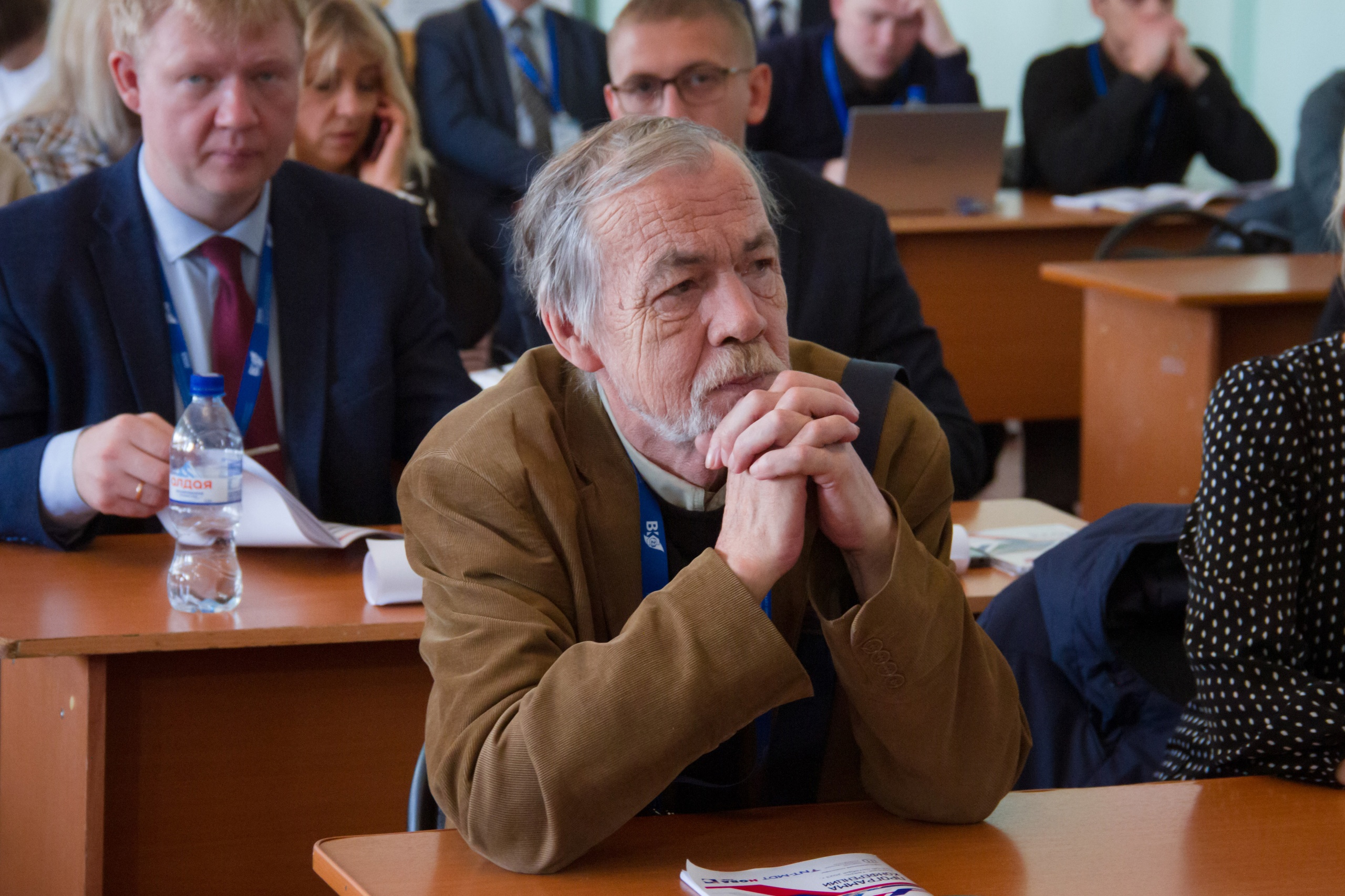 3 октября 2023, Тверь, конференция ВКС-23. Михаил Васильевич Горев на открытии конференции слушает пленарный доклад.