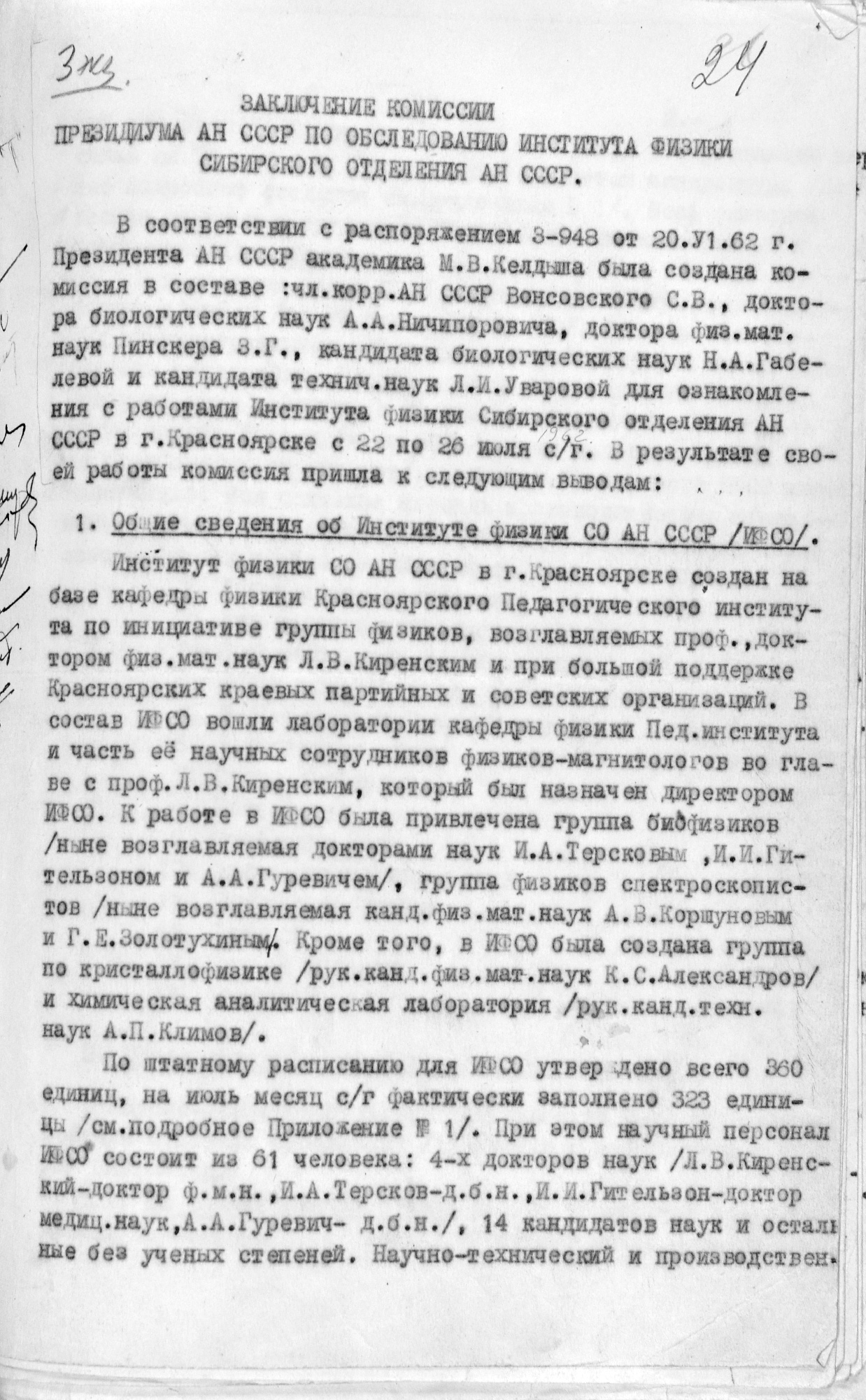 Заключение комиссии Президиума АН СССР по обследованию ИФ СО АН