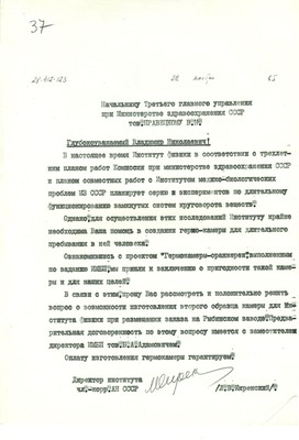 Начальнику 3 главного управления при Минздраве СССР Правецкому В.Н.