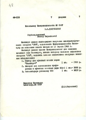 Вы здесь: Главная / Документы / Переписка Л. В. Киренского / Письма Л. В. Киренского / Начальнику Центракадемснаба АН СССР