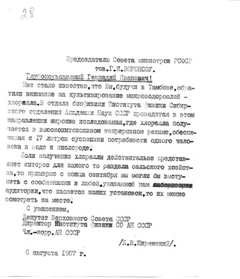 Вы здесь: Главная / Документы / Переписка Л. В. Киренского / Письма Л. В. Киренского / Председателю Совета министров РСФСР Г.И. Воронову