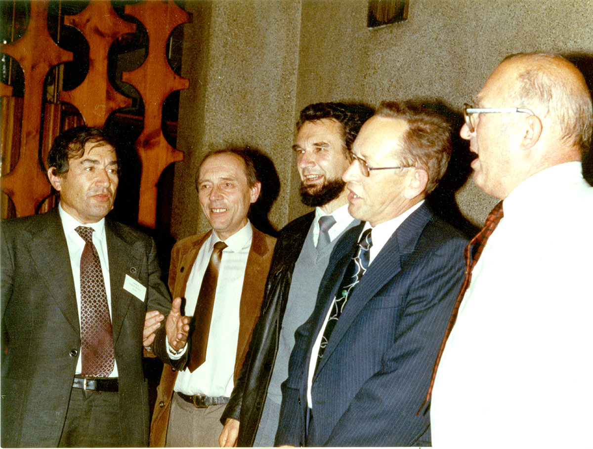 «Поем русские песни…» ─ Академик Александров К.С.(второй справа), директор Института физики им. Л.В. Киренского Сибирского отделения Академии наук СССР (ИФ СО АН СССР), среди участников III-го советско-японского семинара по сегнетоэлектричеству. Слева направо: Фридкин В.М., профессор института кристаллографии им. А.В. Шубникова АН СССР, профессора МГУ: Леванюк А.П., Струков Б.А., Шувалов Л.А., Новосибирск, 1984 год.