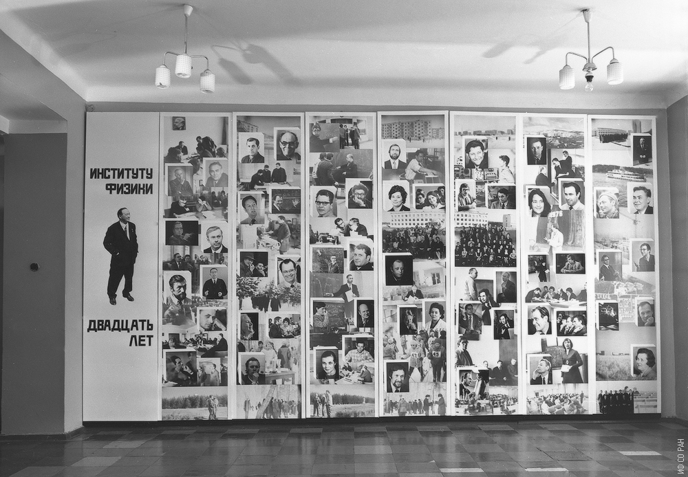 Фотостенд, изготовленный сотрудником лаборатории кристаллофизики Борисом Валерьевичем Безносиковым к 20-летию Института физики СО АН СССР, 1976 г.