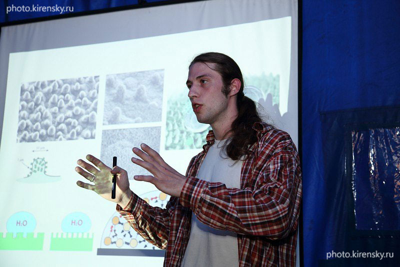 Фрейдман Александр Леонидович, младший научный сотрудник лаборатории сильных магнитных полей Института физики им. Л.В. Киренского Сибирского отделения Российской академии наук с докладом на семинаре лаборатории. Снимок 2012 года.