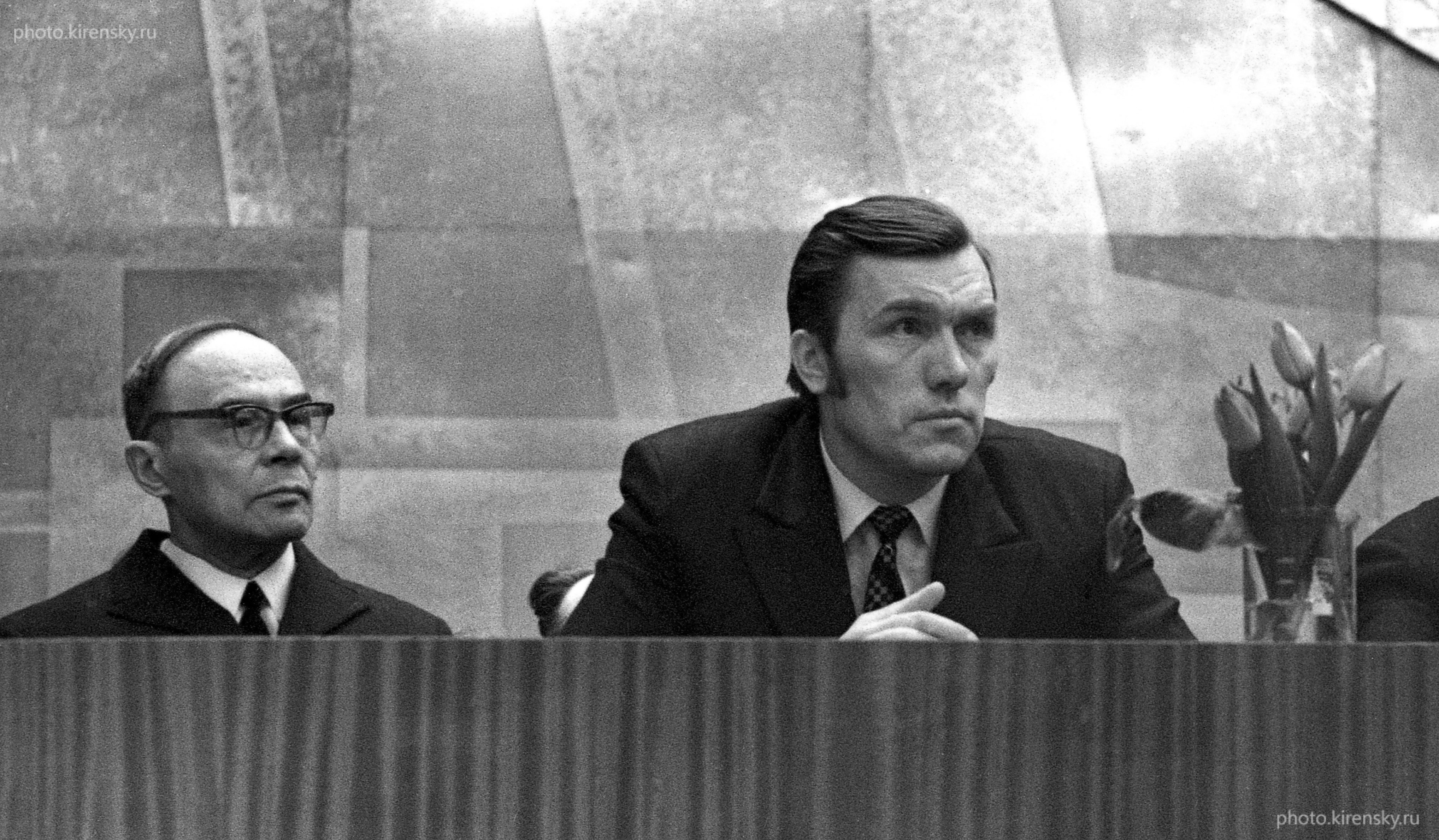 В апреле 1974 года Академии наук СССР исполнилось 259 лет. В Институте физики им. Л.В. Киренского Сибирского отделения Академии наук СССР (ИФ СО АН СССР) состоялось торжественное собрание сотрудников института, посвященное этой дате. В президиуме: Коршунов А.В., заведующий отделом оптики, заведующий лабораторией молекулярной спектроскопии (слева) и Чистяков Н.С., заведующий лабораторией физики магнитных явлений. Красноярск.