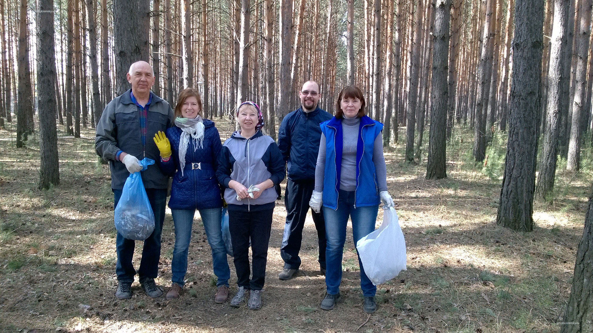 Сотрудники лаборатории физики магнитных явлений Института физики им. Л.В. Киренского Сибирского отделения Российской академии наук, участники традиционного весеннего субботника по уборке территории института. Слева направо: Овчинников Сергей Геннадьевич, заведующий лабораторией; Казак Наталья Валерьевна, старший научный сотрудник; Бруштунова Ольга Николаевна, лаборант; Петров Дмитрий Анатольевич, научный сотрудник; Иванова Оксана Станиславовна, старший научный сотрудник лаборатории. 2017 год.