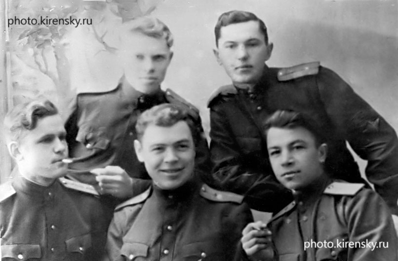 1943 год. На снимке А.И. Дрокин (сидит в центре), летчик перегоночной авиационной трассы времен Великой Отечественной войны «Аляска – Сибирь» (АлСиб.). Красноярск.