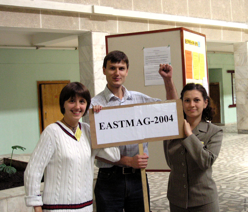 Мальцева Е., Еремин Е., Панова М., сотрудники лаборатории радиоспектроскопии и спиновой электроники Института физики им. Л.В. Киренского Сибирского отделения Российской академии наук (ИФ СО РАН), Участники Евро-Азиатского симпозиума «Прогресс в магнетизме» (EASTMAG-2004), организованного и проведенного в Красноярске в августе 2004 года.