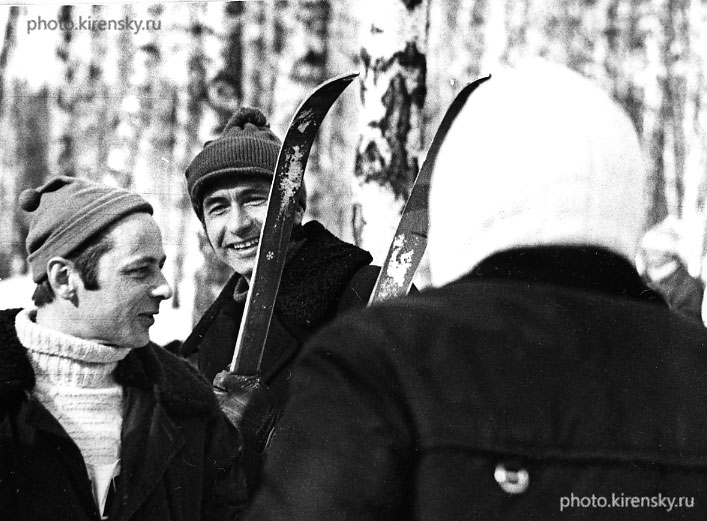 Петраковский Герман Антонович (слева), доктор физико-математических наук, профессор, заведующий лабораторией резонансных свойств магнитоупорядоченных веществ Института физики им. Л.В. Киренского Сибирского отделения Академии наук СССР и Смокотин Эдуард Михайлович, кандидат физико-математических наук, ученый секретарь Института физики, участники лыжного кросса в березовой роще Академгородка, которые проходили ежегодно с 1970 года. Фото 1974 года. Красноярск.