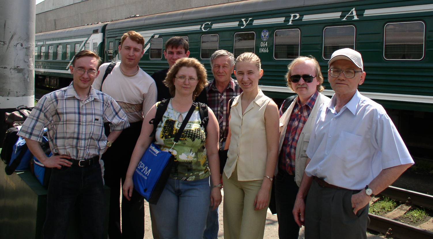 2005 год. Сотрудники Института физики им. Л.В. Киренского Сибирского отделения Российской академии наук (ИФ СО РАН), участники XVI Всероссийской конференции по сегнетоэлектричеству в городе Пенза. Слева направо: Молокеев М.С., Бондарев В.С., Карташев А.В., Крылова С.Н., Зиненко В.И., Фокина В.Д., Втюрин А.Н., Флёров И.Н.