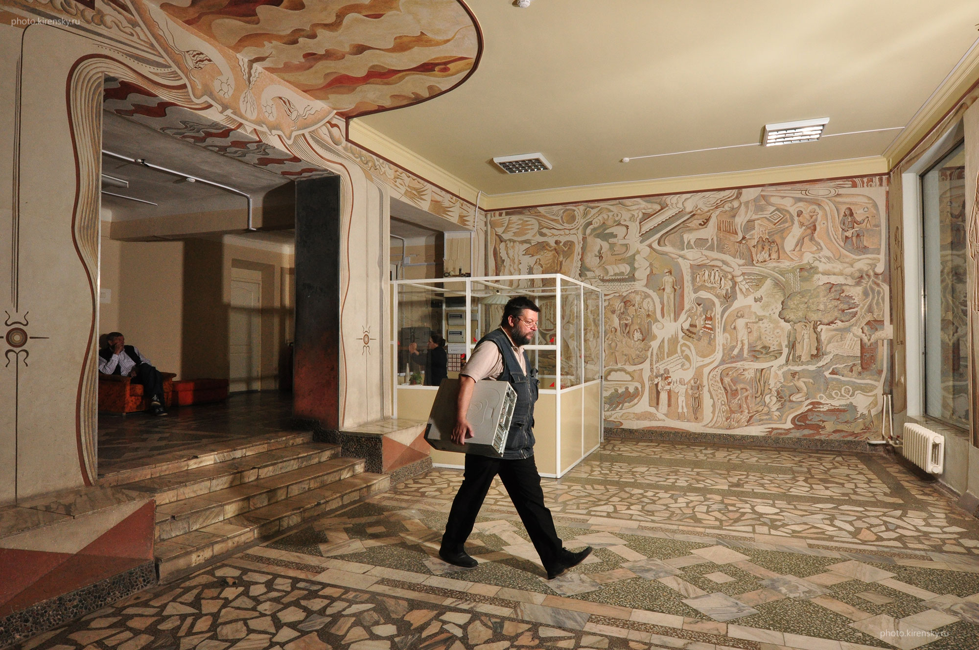 Холл Института физики им. Л.В. Киренского Сибирского отделения Российской академии наук н оформлен фреской работы Красноярского художника А.В. Зражевского в 1987 году. На снимке Плетнев Николай Олегович, ведущий специалист группы информационных технологий.
