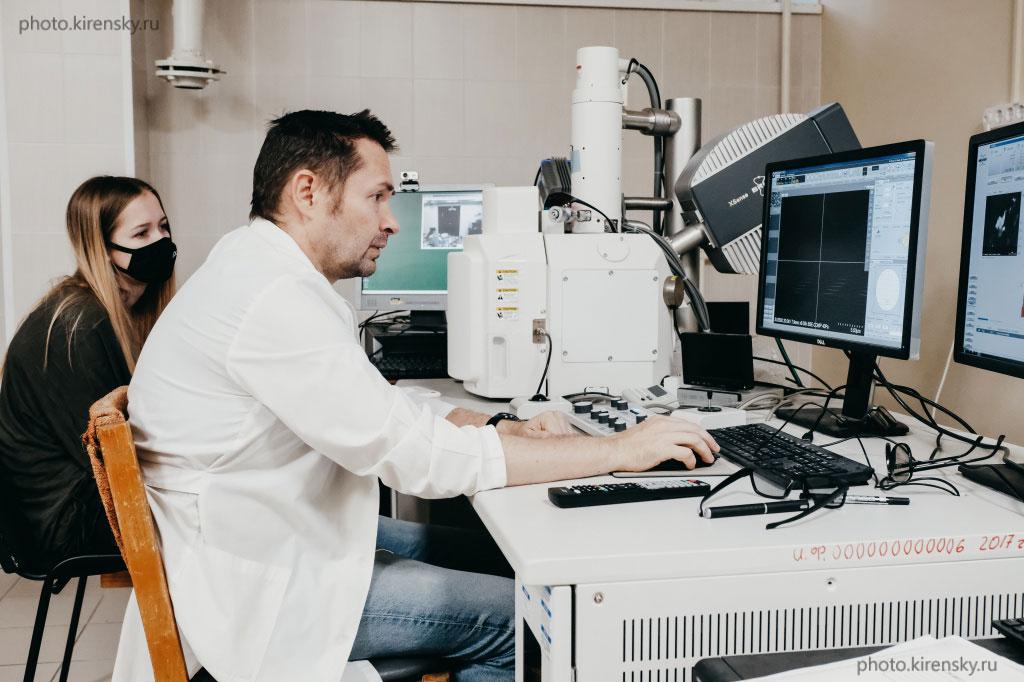Александр Васильевич Шабанов, кандидат физико-математических наук, старший научный сотрудник лаборатории молекулярной спектроскопии с лаборантом за исследовательской аппаратурой. В течение нескольких лет, начиная с 2020 года, Институты Красноярского научного центра Сибирского отделения Российской академии наук (КНЦ СО РАН), в том числе, и Институт физики им. Л.В. Киренского СО РАН приглашают молодых выпускников в качестве помощников ученых на работу инженерами и лаборантами. Фото 2022 года.