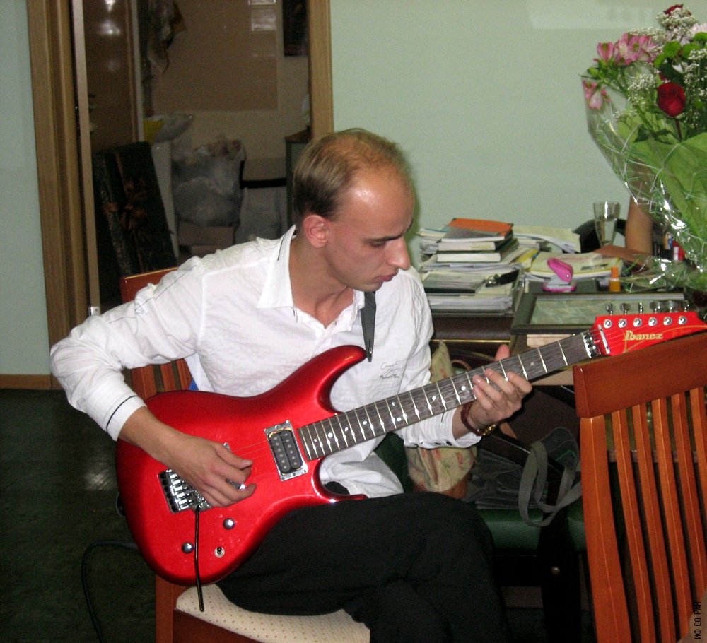 Виталий Цикалов, инженер в лаборатории радиоспектроскопии и спиновой электроники Института физики им. Л.В. Киренского Сибирского отделения Российской академии наук (ИФ СО РАН), поздравляет заведующего лабораторией Волкова Н. В. с 50-им юбилеем, 18 ноября 2011 года. Красноярск.