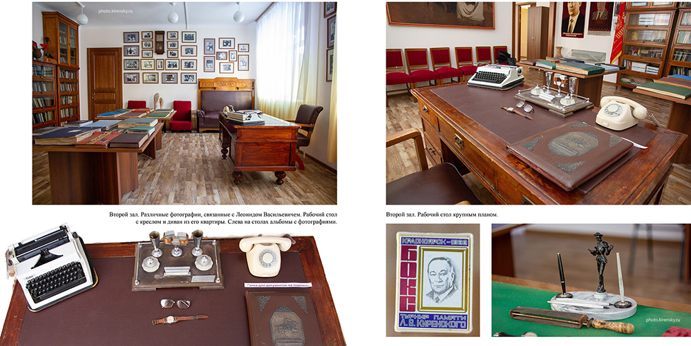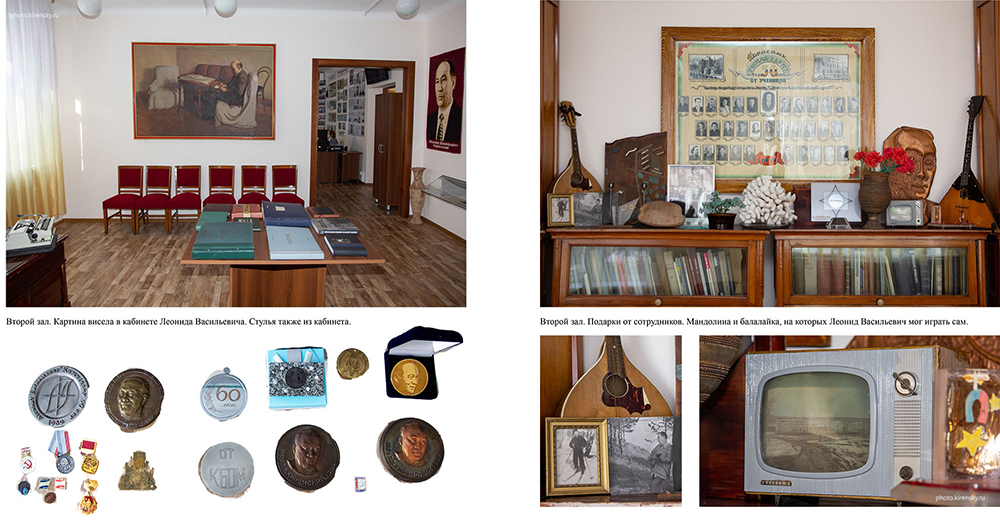 Второй зал, это мемориальная комната, созданная на основе домашнего рабочего кабинета с личной библиотекой Леонида Васильевича и обстановкой тех лет. Здесь же выставка сувениров и подарков к юбилеям Леонида Васильевича и сувениров 20-му юбилею института.