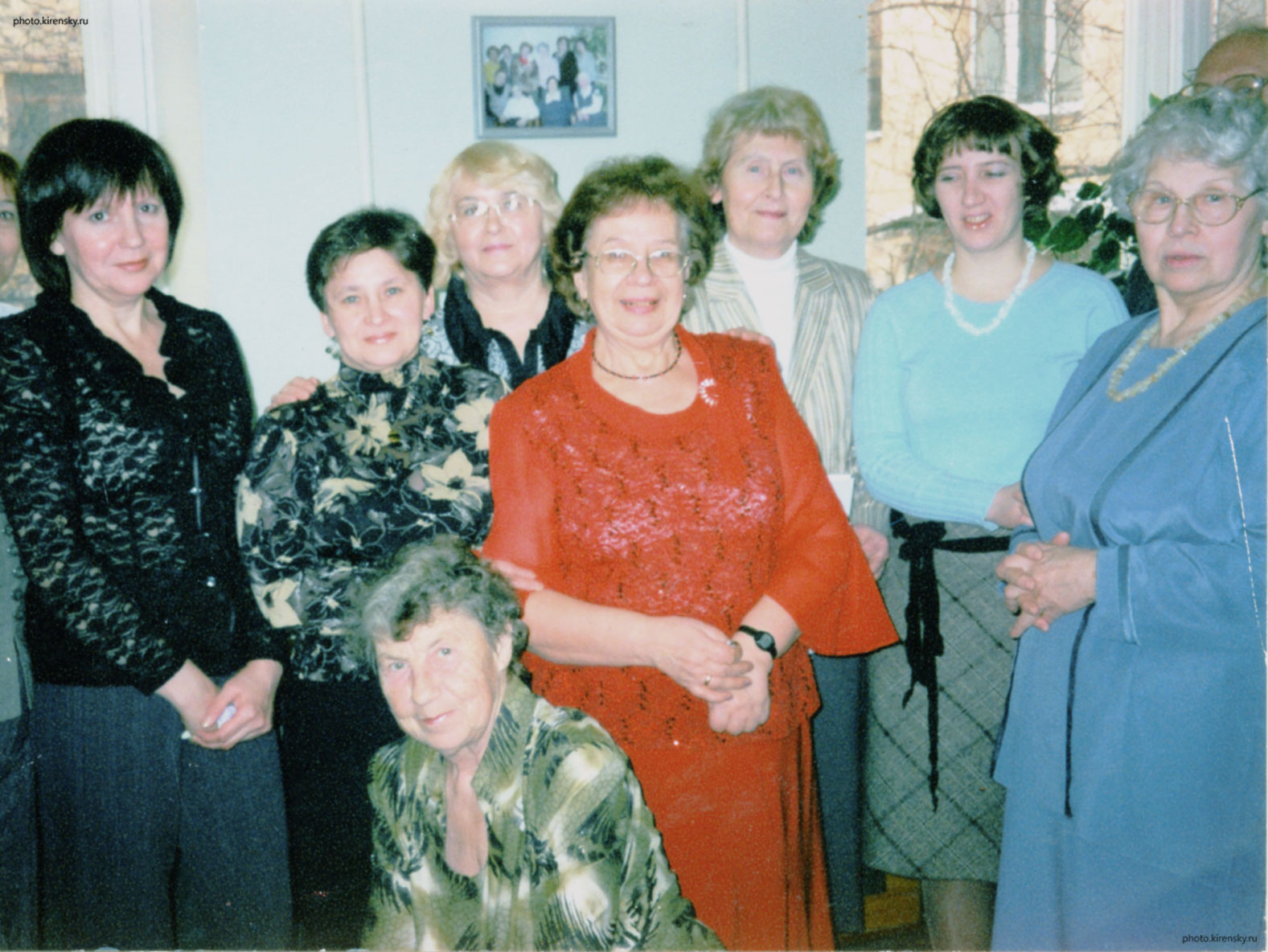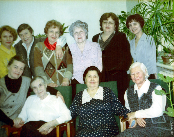 Фото на память. Сотрудники библиотеки Института физики им. Л.В. Киренского Сибирского отделения Российской академии наук (ИФ СО РАН), работавших в её стенах в разные годы. Сидят, слева направо: Блохина О.В., Власова П.Л, Южакова И.М., Байкалова К.И. Во втором ряду, слева направо: Спирина Т.В., Шугинина Г.А., Трубачева Г.Б., Андреева Р.А., Шефер О.А., Мамаева Е.Б., фото 2001 года. Красноярск.