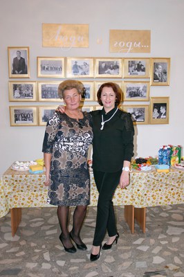 12 октября 2016 года. На празднике в честь 60-летия Института физики им. Л.В. Киренского Сибирского отделения Российской академии наук (ИФ СО РАН). Старостина О.И., заведующая канцелярией, (слева), Бондарева Е.В., помощник директора. Красноярск.