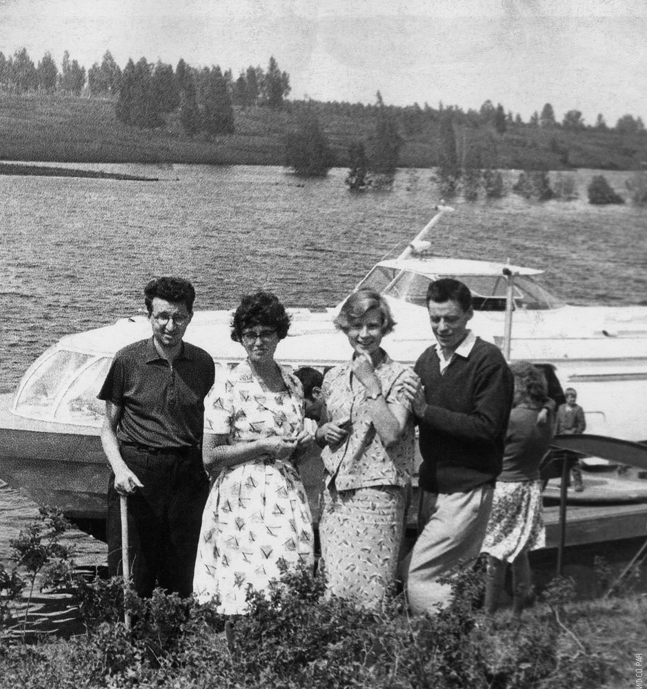 1962 год. На одной из «зеленых остановок» теплохода «А.Матросов» (рейс Красноярск-Дудинка-Красноярск), на котором проходил Всесоюзный симпозиум по вопросам ферро – и антиферромагнетизма. Симпозиум был организован и проведен Институтом физики Сибирского отделения Академии наук СССР. Сотрудники Института физики, слева направо: Хлебопрос Рем Григорьевич, Эдельман Ирина Самсоновна, Родичева Эмма Константиновна и Родичев Александр Михайлович.