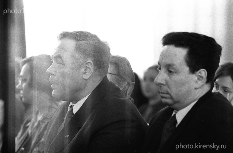 7 апреля1969 года. Академику Л.В. Киренскому, директору Института физики Сибирского отделения Академии наук СССР (ИФ СО АН СССР) исполнилось 60 лет. В конференц-зале института поздравляли юбиляра. В президиуме торжественного заседания, слева направо: Сидько Ф.Я., Киренский Л.В., Калинин В.В., Сарапкин П.С., Лундин А.Г. Красноярск.
