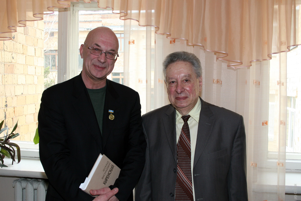 Академик Ваганов Е.А., ректор Сибирского федерального университета (слева) и профессор Лундин А.Г., 9 апреля 2009 года в перерыве торжественного заседания, посвященного 100-ю со дня рождения основателя и первого директора Института физики им. Л.В. Киренского Сибирского отделения Российской академии наук (ИФ СО РАН) академика Киренского Л.В. Красноярск.