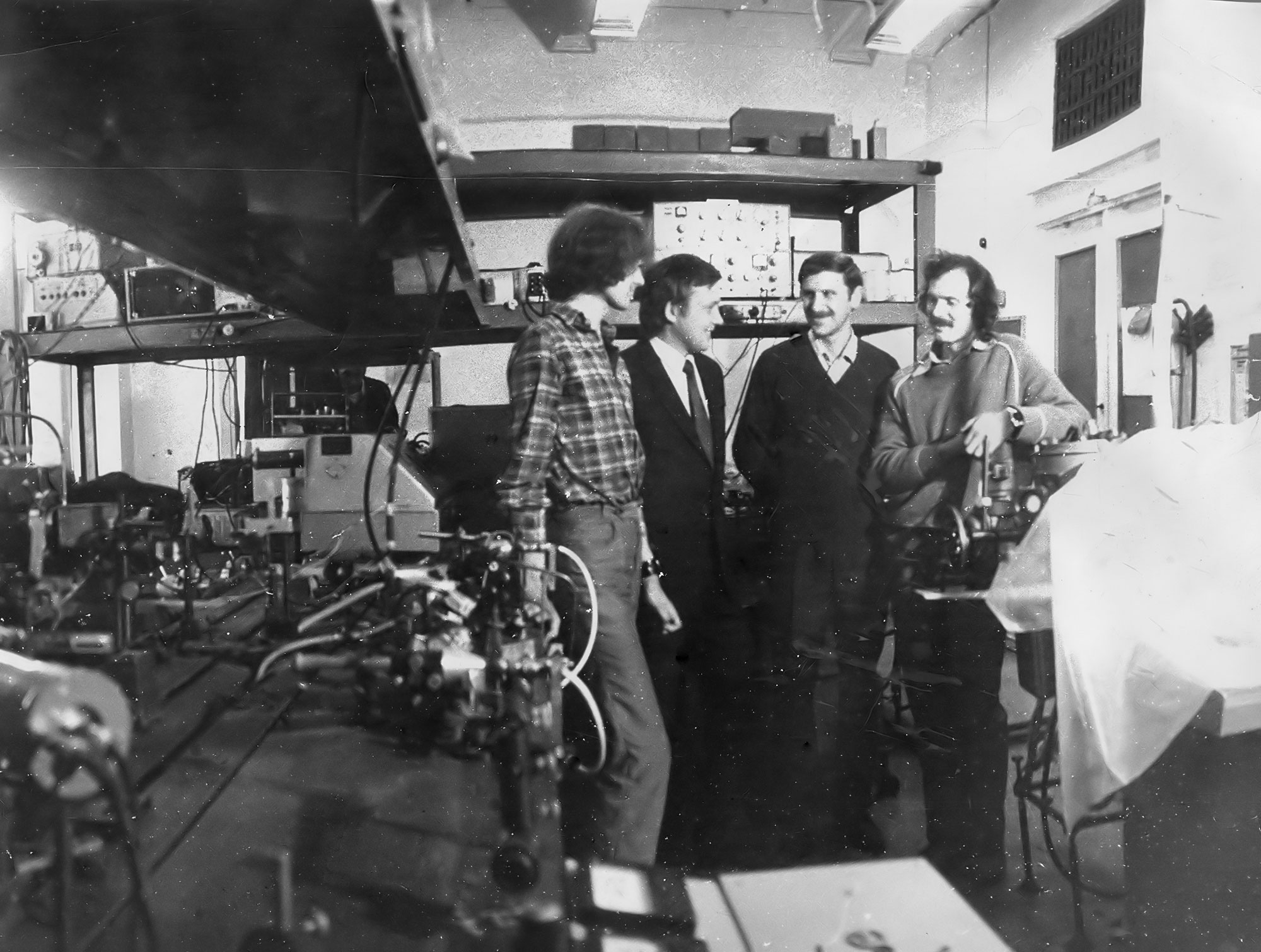 1981 год. На снимке сотрудники лаборатории когерентной оптики Института физики им. Л.В. Киренского Сибирского отделения Академии наук СССР (ИФ СО АН СССР). В первом ряду сидят (слева направо): Архипкин В.Г., Кодиров М.К., Мелкозерова Л.В., Тимофеев В.П., Попов А.К..- заведующий лабораторией, Перцева Л.В. В среднем ряду (слева направо): Подавалова О.П., Садовничий А.Е., Мысливец С.А., Лукиных В.Ф., Эпштейн В.Ш., Кияшко В.А., Слабко В.В, Им Тхек Де. В третьем ряду (слева направо): Болотских Л.Т., Высотин А.Л., Макаров Н.П., Александровский А.С. Красноярск.