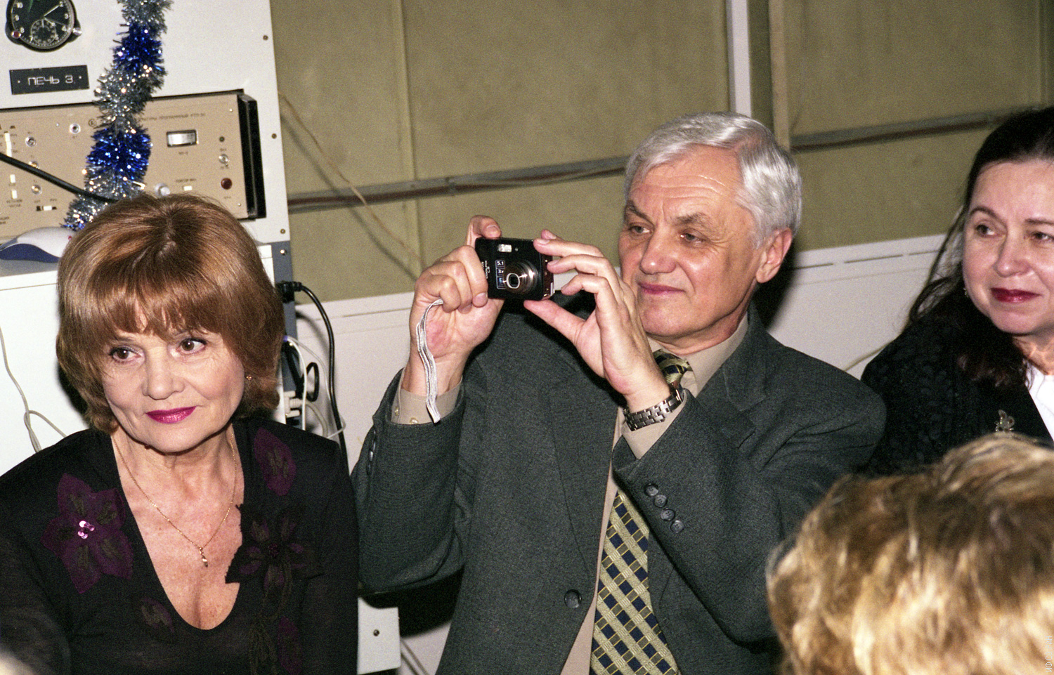 Панкрац А.И., старший научный сотрудник лаборатории резонансных свойств магнитоупорядоченных веществ Института физики им. Л.В. Киренского Сибирского отделения Российской академии наук (ИФ СО РАН), его супруга Лариса Панкрац (слева) и Дрокина Т.В. на праздновании 35-летия лаборатории, которая была образована 27 декабря 1971 года. Фото 2006 года. Красноярск.