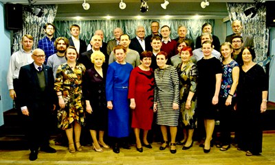 Сотрудники лаборатории кристаллофизики разных лет в годовщину лаборатории, слева направо: Флёров И.Н., Михалёва Е.А., Давыдова Т.Н., Поздняков Л.А., Шабанова Л.А., Бовина А.Ф., Безотечества Г.Н., Софронова С.Н., Фокина В.Д., Мельникова С.В. Во втором ряду: Бондарев В.С., Павловский М.С., Овчинников С.Г. – зав. лабораторий ФМЯ, Жандун В.С., Погорельцев Е.И..., Карташов А.В., Зайцев А.И. – зав. лабораторией КФ, Шинкоренко А.С. В третьем верхнем ряду: Андрюшин Н., Вьюнышев А.М. – зам директора ИФ, Круглик А.И., Зиненко В.И., Шабанов В.Ф. – председателть ФИЦ КНЦ, Васильев А.Д.. Молокеев М.С., Красиков В.С., Розанов О.В., Горев М.В. 2019 год.