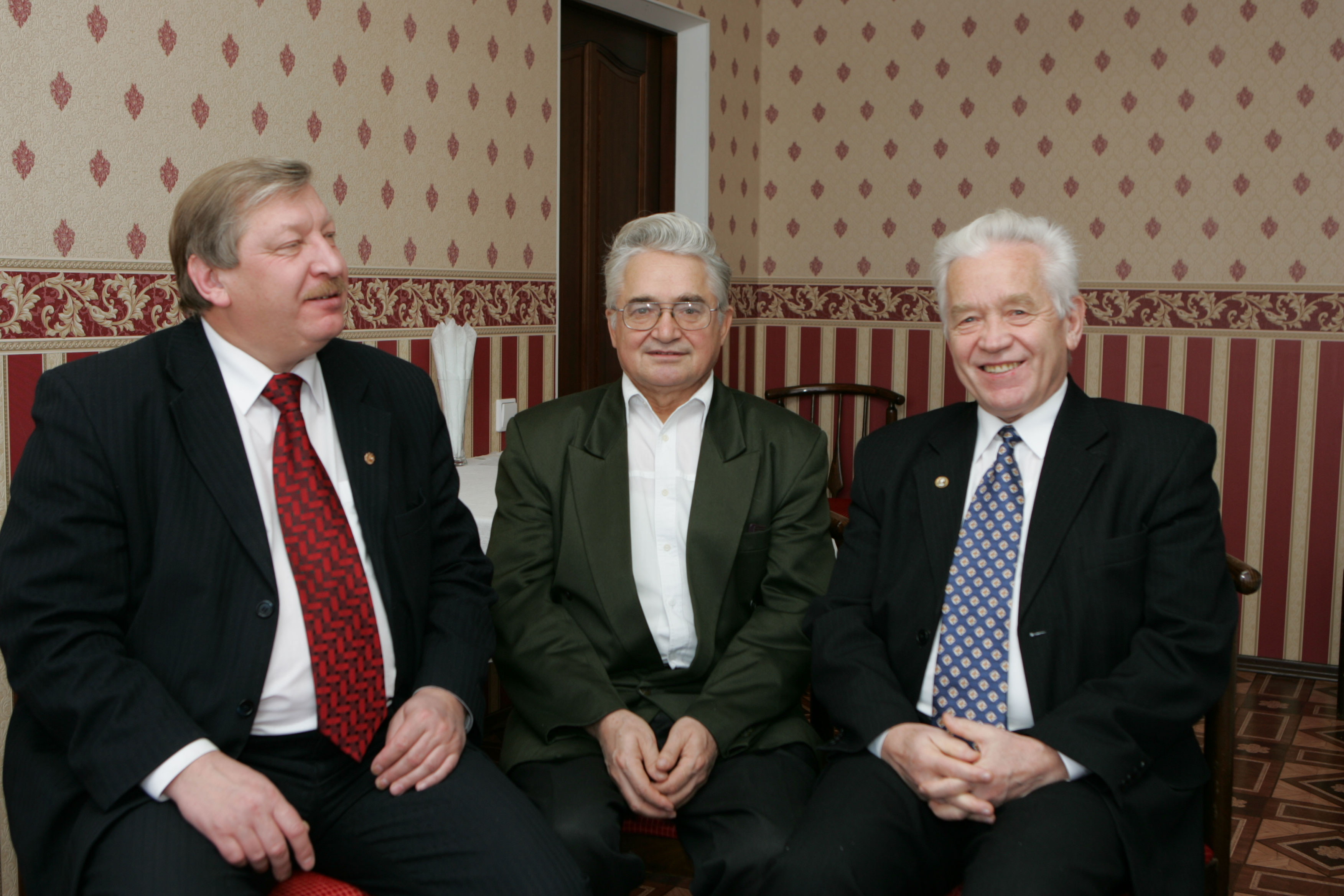 Слева направо: Москвичев В.В. , директор Специального конструкторско-технологического бюро Красноярского научного центра Сибирского отделения Российской академии наук «Наука» (СКТБ КНЦ СО РАН "Наука"), Шабанов В.Ф. , председатель Президиума Красноярского Научного центра СО РАН и председатель комиссии РАН Махутов Н.А. Снимок 2005 года. Красноярск. Академгородок. Дом ученых.