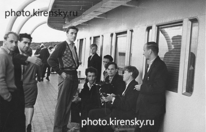 Смолин Р.П. (слева) и Чистяков Н.С., участники Всесоюзного симпозиума по сильным магнитным полям, организованного и проведенного Институтом физики Сибирского отделения Академии наук СССР (ИФ СО АН СССР), на теплоходе «В. Чкалов» (рейс Красноярск – Дудинка - Красноярск) в июле 1966 года.