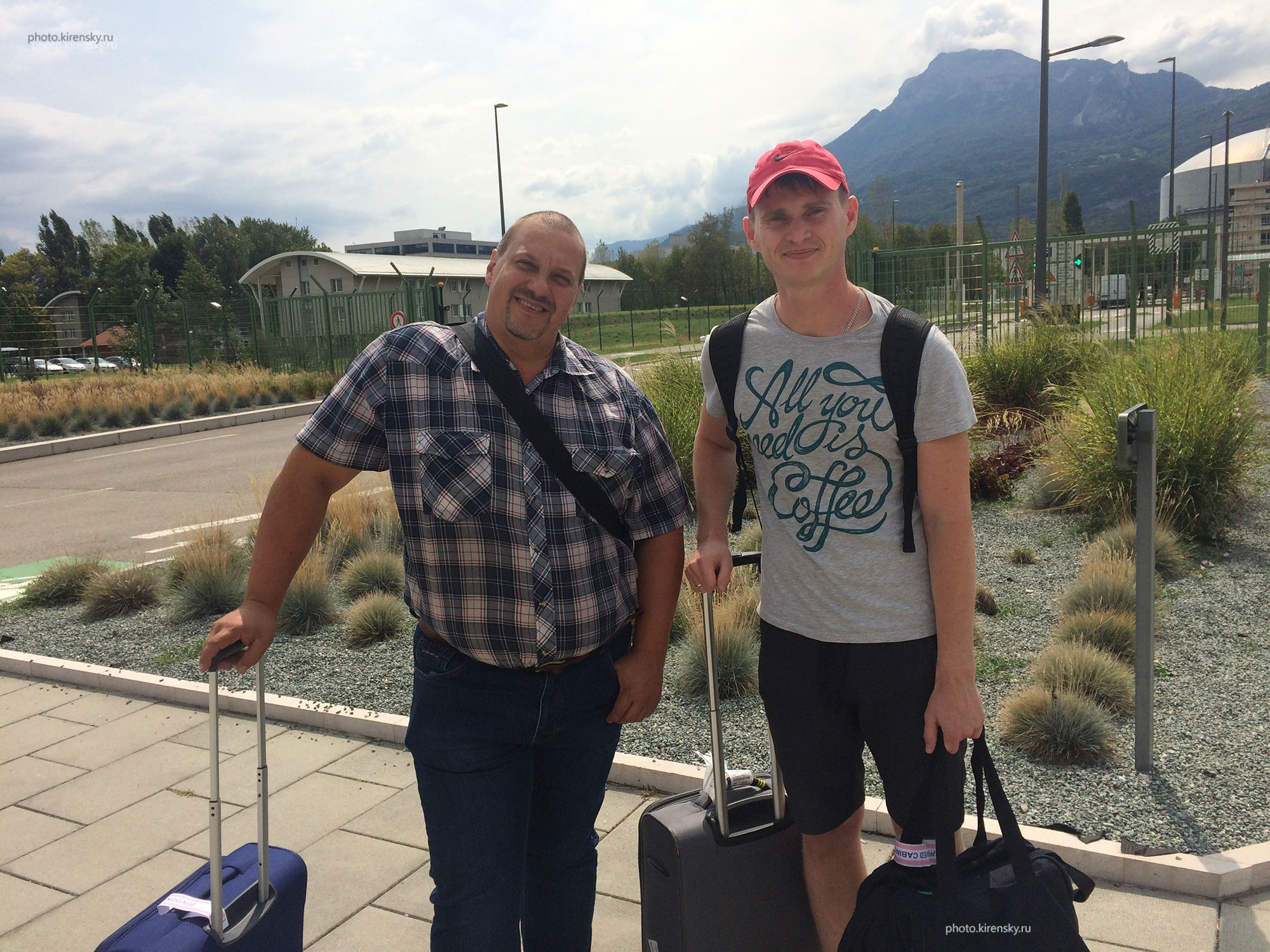 Князев Юрий Владимирович (справа), старший научный сотрудник лаборатории резонансных свойств магнитоупорядоченных веществ Института физики им. Л.В. Киренского Сибирского отделения Российской академии наук во Франции для участия в эксперименте на Европейской установке синхронного излучения (ESRF). (Европейский Источник Синхротронного Излучения (ESRF), расположенный в Гренобле — международный проект, в котором участвует 18 стран). Слева старший научный сотрудник лаборатории физики магнитных явлений Института физики Алексей Эдуардович Соколов. Гренобль, 2018 год.