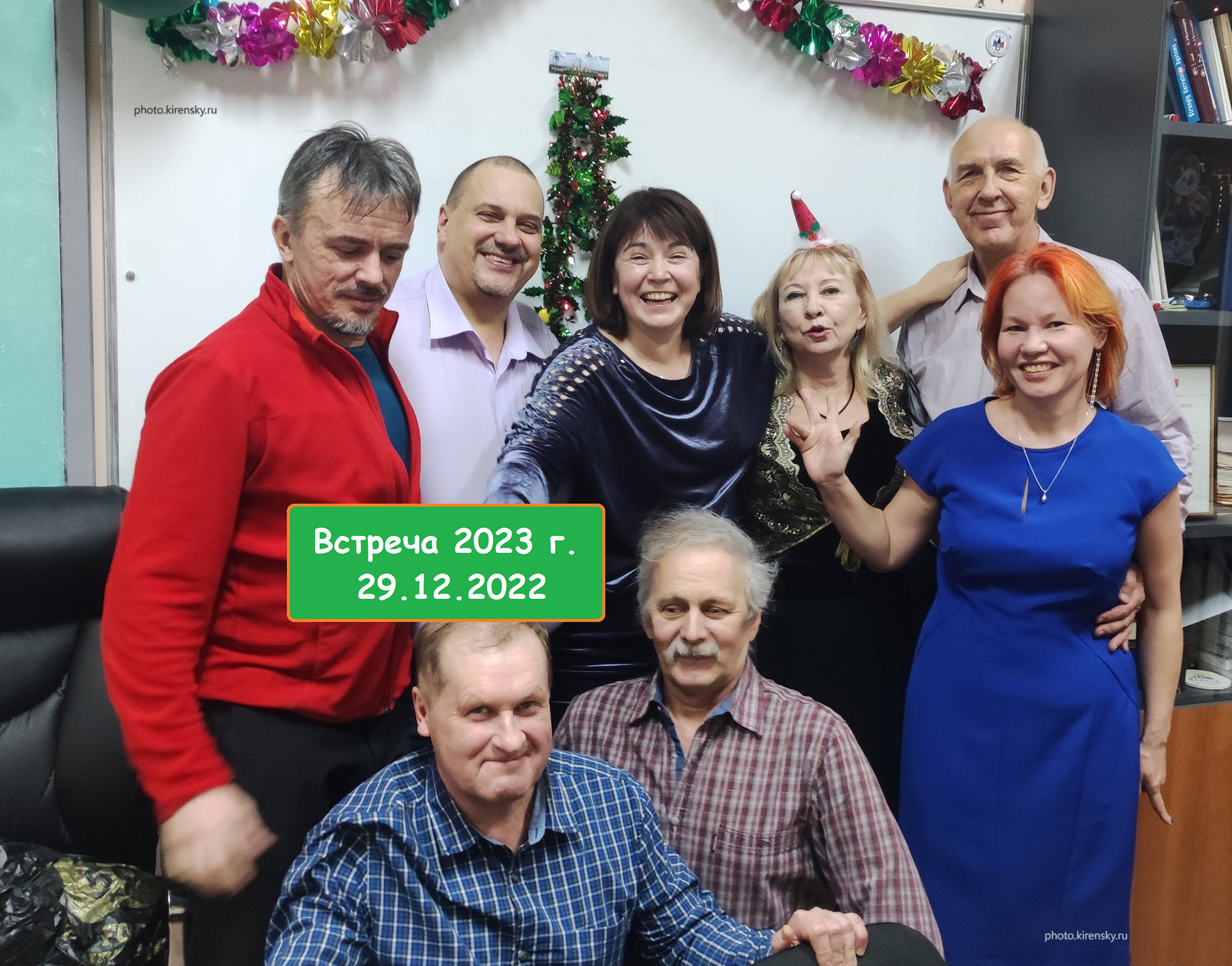 Встреча Нового года сотрудниками лаборатории физики магнитных явлений Института физики им. Л.В. Киренского Сибирского отделения Российской академии наук. Слева направо: ?, Соколов Алексей Эдуардович, Иванова Оксана Станиславовна, Бруштунова Ольга Николаевна, Овчинников Сергей Геннадьевич, Гохфельд Юлия Сергеевна. Сидят: Федоров Александр Семенович (слева), Александровский Александр Сергеевич. 29 декабря 2022 года