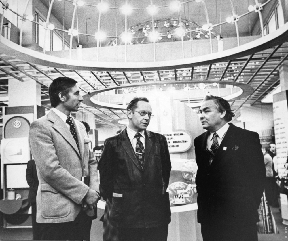 Слева направо: Смокотин Э.М., ученый секретарь Института физики им. Л.В. Киренского Сибирского отделения Академии наук СССР (ИФ СО АН СССР), Александров К.С., директор Института физики СО АН СССР, Терсков И.А., директор Института биофизики Сибирского отделения Академии наук СССР, на выставке, приуроченной к 25-летию образования Сибирского отделения АН СССР, Новосибирск, 1982 г.