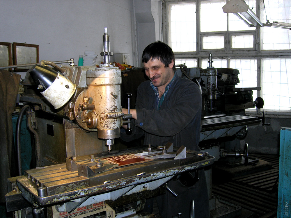 Экспериментально-опытный участок Института физики им. Л.В. Киренского Сибирского отделения Российской академии наук (ИФ СО РАН). Фрезеровщик Турко Игорь Маратович, Фото 2000 года. Красноярск.