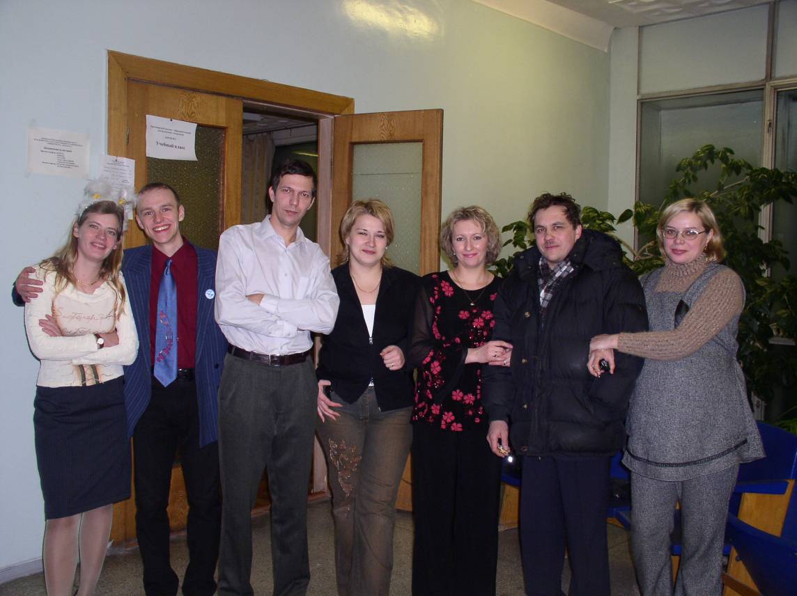 Молодежь Института физики им. Л.В. Киренского Сибирского отделения Российской академии наук (ИФ СО РАН) встречает Новый 2004 год. Слева направо: Софронова С.Н., Волошин А.С., Шайхутдинов К.А., Босуновская О.А., Бондарева Е.В., Волков Н.В., Романова О.Б. Красноярск.
