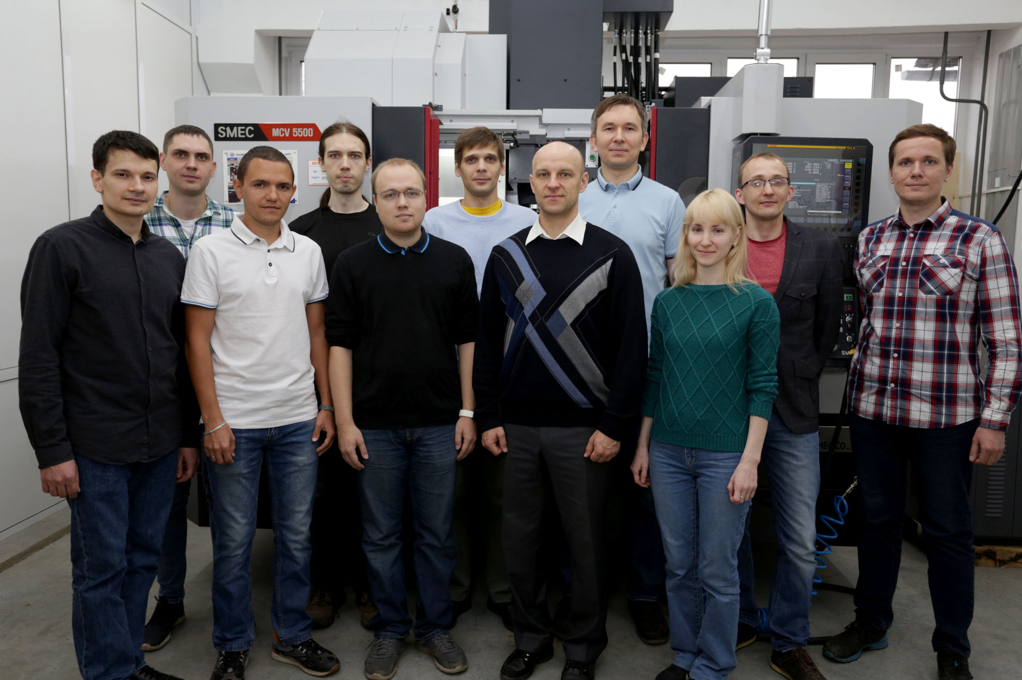 Октябрь 2021 года. Сотрудники лаборатории научного приборостроения Института физики им. Л.В. Киренского Сибирского отделения Российской академии наук. В первом ряду, слева направо: А. В. Угрюмов, А.О. Афонин, Д. А. Шабанов, А.С. Волошин, С. А. Клешнина. В следующем ряду: А. В. Бурмитских, Е. О. Грушевский, И.В. Говорун, К. В. Лемберг, Н.М. Боев (заведующий лабораторией), И.В. Подшивалов.