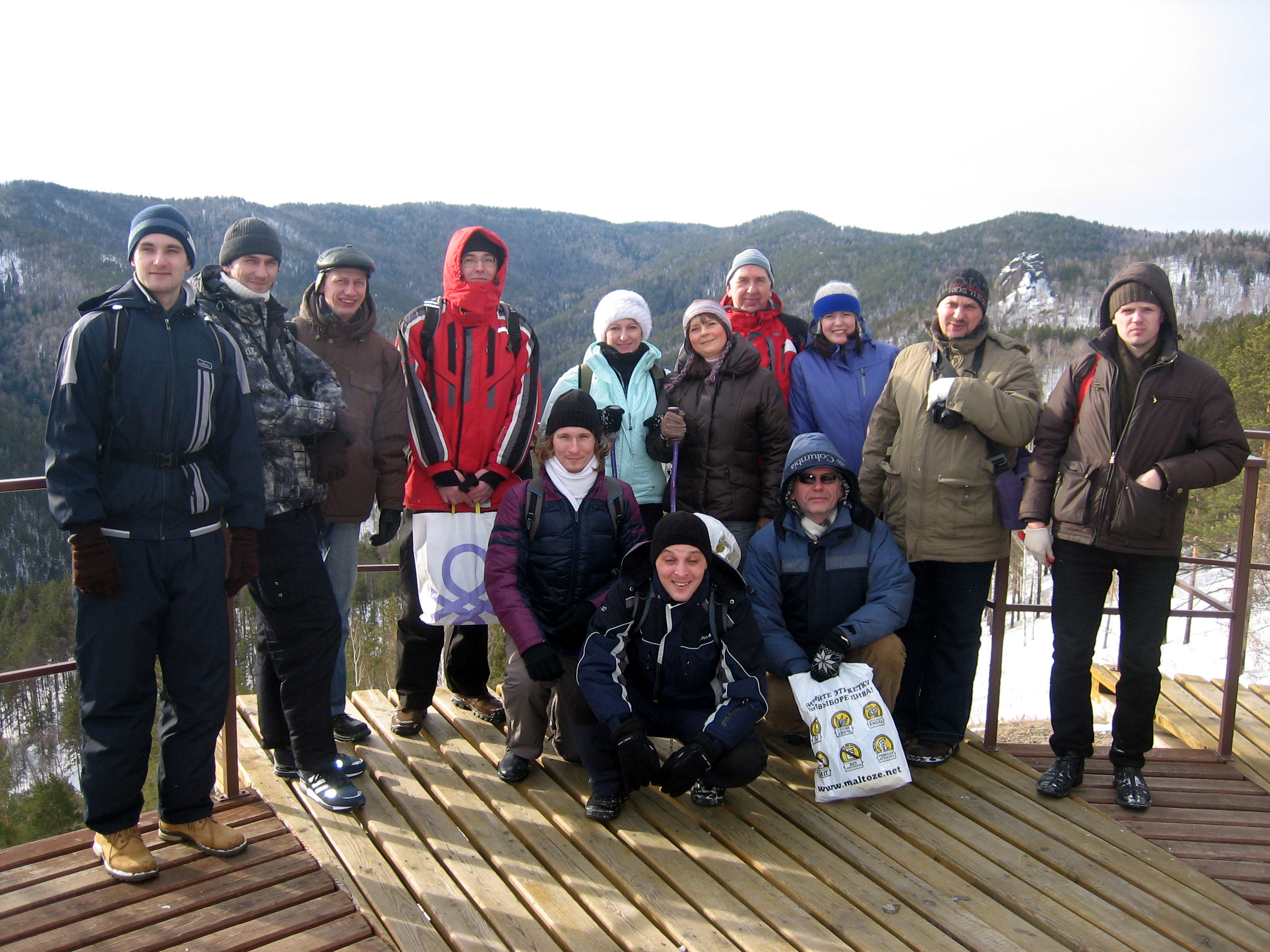 1 марта 2013 года. Сотрудники лаборатории физики магнитных явлений Института физики им. Л.В. Киренского Сибирского отделения Российской академии наук. Поход на Малый Беркут заповедника "Столбы". Стоят слева направо: Пётр Козлов, Сергей Лященко, Сергей Николаев, Илья Макаров, Елена Бондарева, Елена Яковлева, Сергей Геннадьевич Овчинников, Оксана Иванова, Алексей Соколов, Руслан Иванцов. Сидят слева направо: Иван Яковлев, Александр Сухачёв, Вячеслав Дудников. Красноярск.