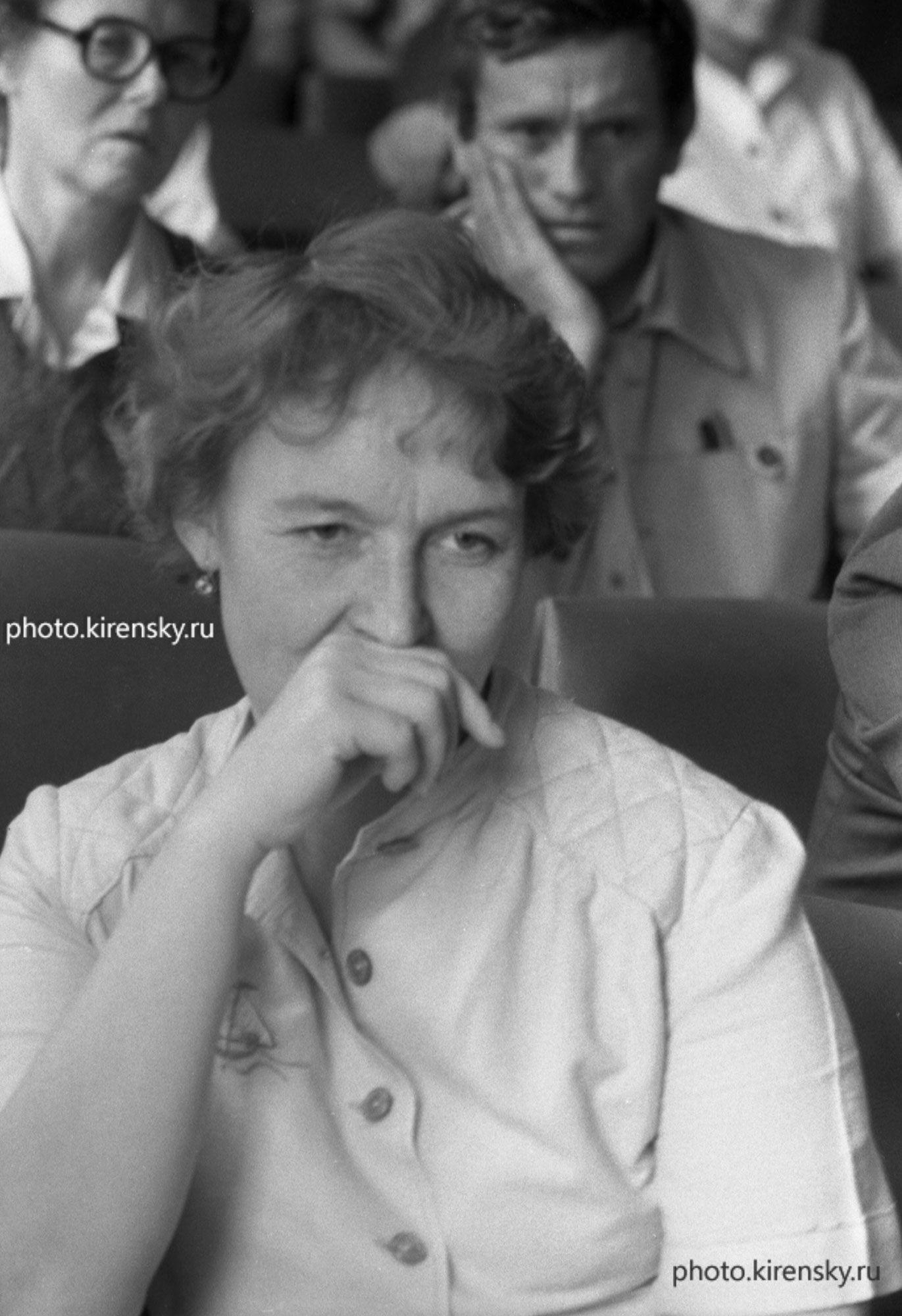 На снимке научные сотрудники лаборатории кристаллофизики Института физики им. Л.В. Киренского Сибирского отделения Академии наук СССР (СО АН СССР с 1991 года - СО РАН) Александрова И.П. (слева) и Зайцева М.П. в конференц-зале на обще институтском философском семинаре. Снимок 1972 года. Красноярск.