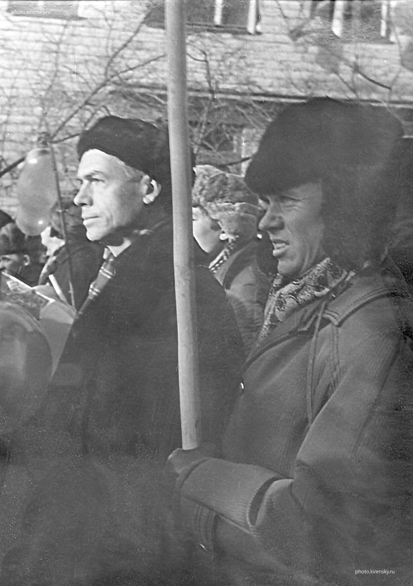 Золотухин Г.Е. и Попов А.К., сотрудники Института физики им. Л.В. Киренского Сибирского отделения Академии наук СССР, на демонстрации посвященной революции 1917 года. 7 ноября 1976 года. Красноярск.