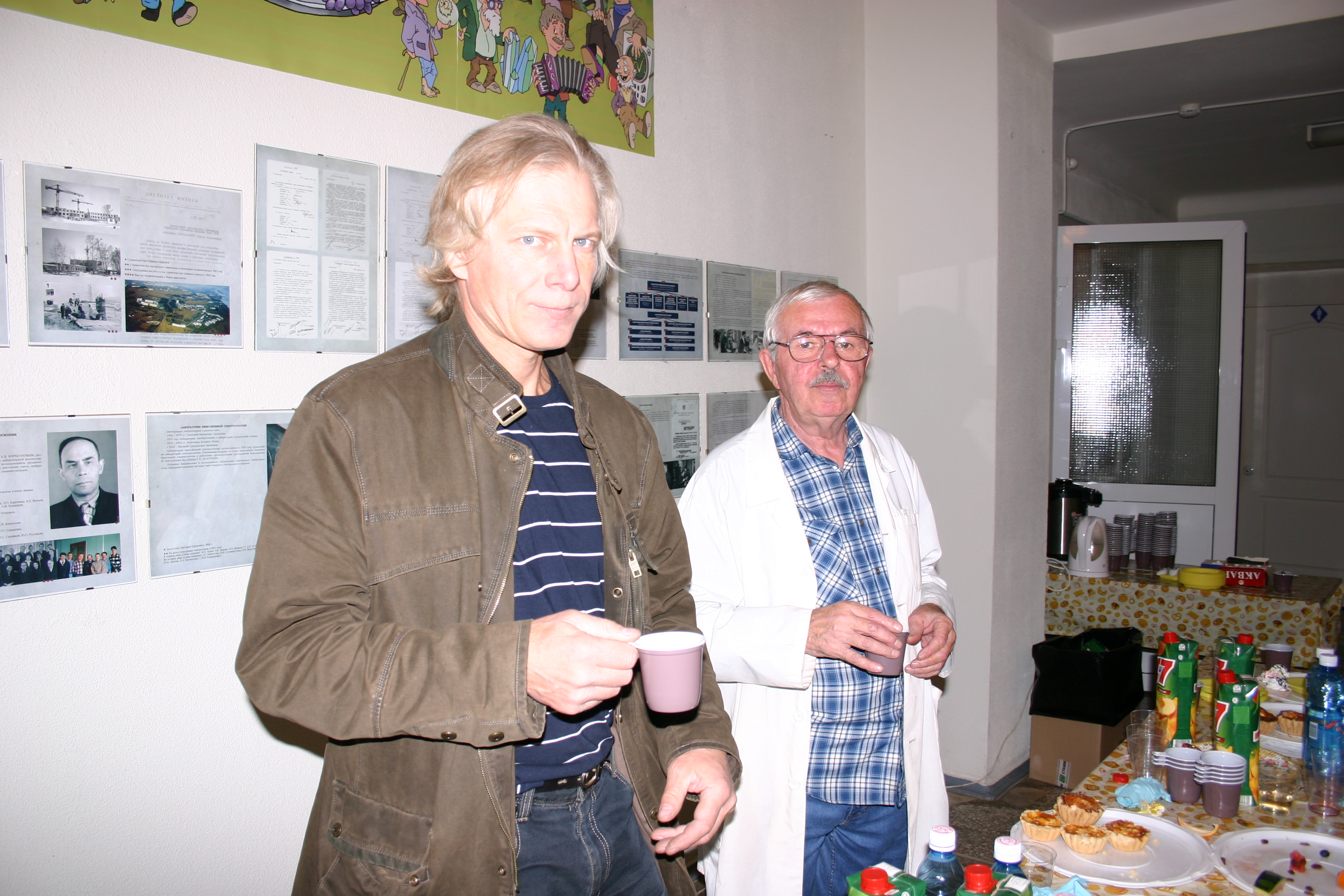 12 октября 2016 года. На празднике в честь 60-летия Института физики им. Л.В. Киренского Сибирского отделения Российской академии наук (ИФ СО РАН). Слева направо: Д.А. Великанов (слева), старший научный сотрудник лаборатории резонансных свойств магнитоупорядоченных веществ и В.И. Михальский, электроник по ремонту и настройки радиоэлектронных средств измерений группы информационных технологий института. Красноярск.