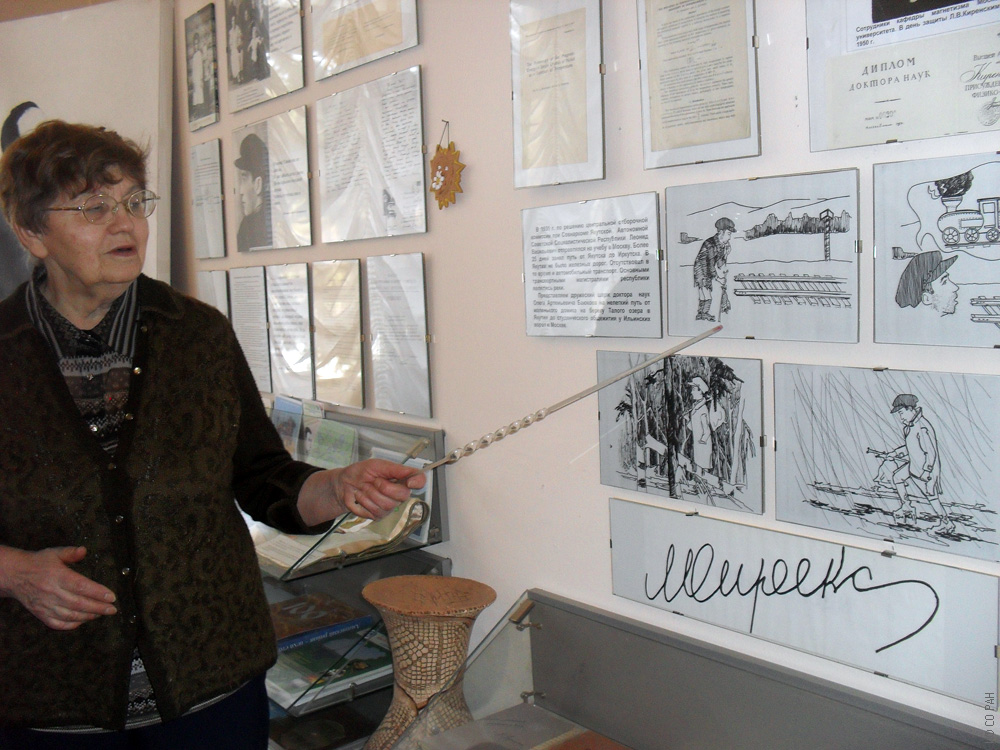 2013 год. Профессор Ирина Самсоновна Эдельман проводила экскурсию в мемориальном музее Л.В. Киренского, организатора и первого директора Института физики Сибирского отделения Российской академии наук для школьников из Амги (Якутия), малой родины академика Киренского. Красноярск.