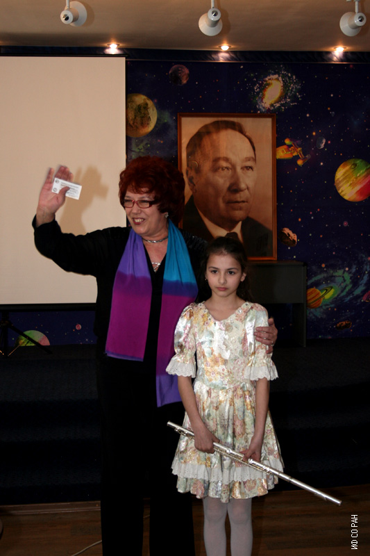 После торжественного заседания, посвященного 100-тию со дня рождения академика Л.В.Киренского, организатора и первого директора Института физики им. Л.В. Киренского Сибирского отделения Российской академии наук в Доме ученых Красноярского научного центра Сибирского отделения РАН выступили учащиеся детской музыкальной школы № 11 Академгородка. На снимке: директор музыкальной школы Людмила Васильевна Русина и Аня Лысенко.